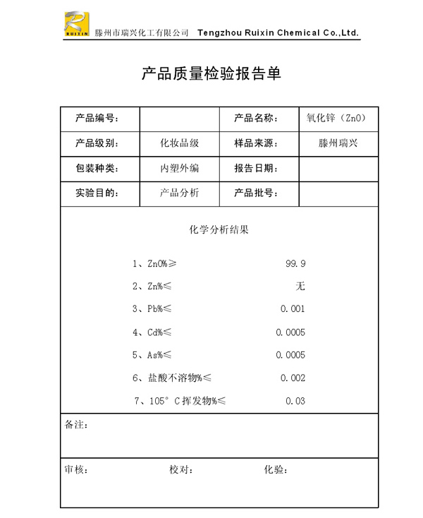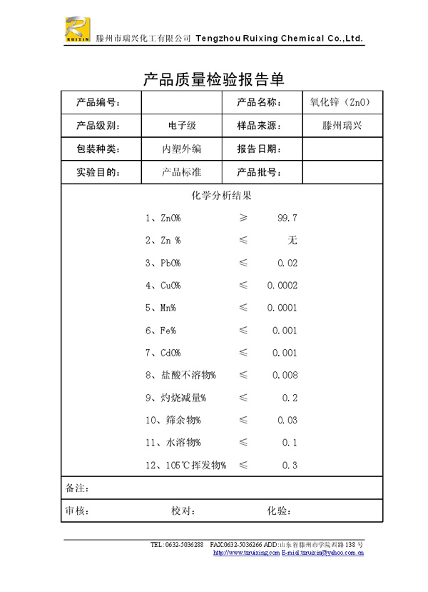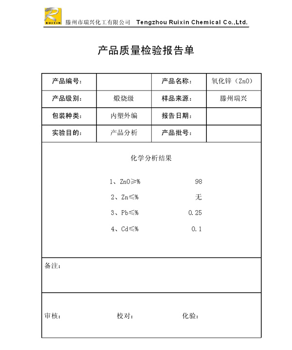 瑞興化工有限公司是生產(chǎn)氧化鋅的重點企業(yè),于2008年通過ISO9001:2008質量管理體系認證。“瑞興”牌氧化鋅在國內(nèi)擁有較大穩(wěn)定的市場,并遠銷東南亞、中東、中南美等國家和地區(qū),在國內(nèi)外享有較高聲譽。